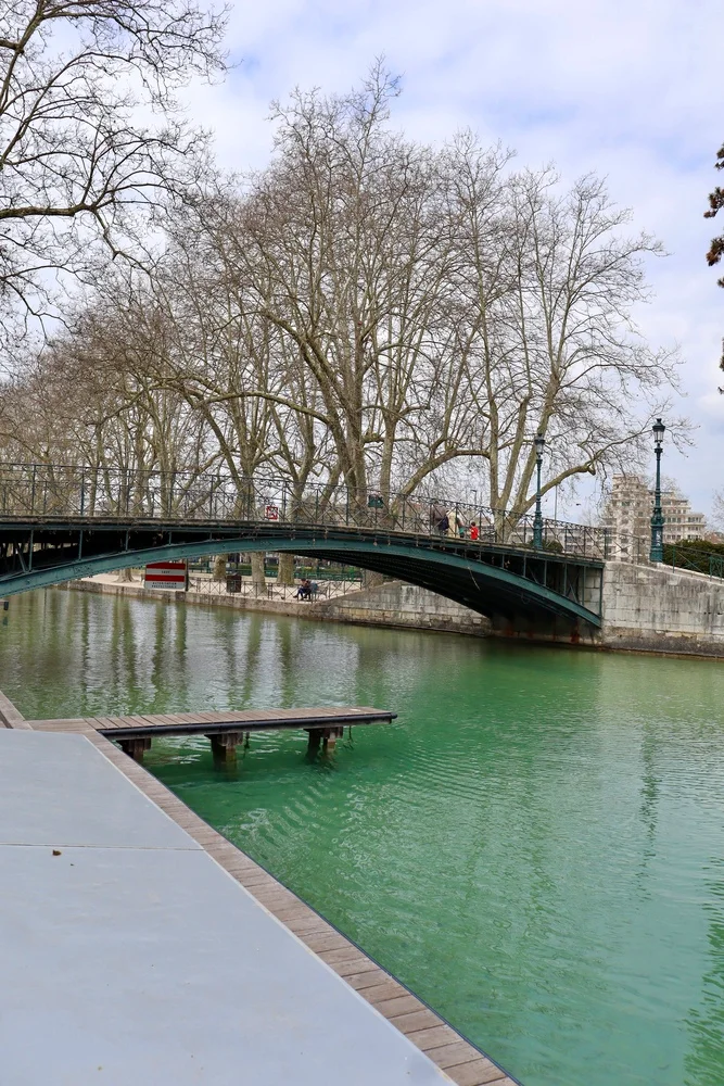 Η διάφημη γέφυρα των ερωτευμένων (Pont des Amours) είναι ένα μεταλλικό γεφυράκι που συνδέει τις όχθες της λίμνης και προσφέρει μοναδική θέα στο κανάλι και στο πάρκο.