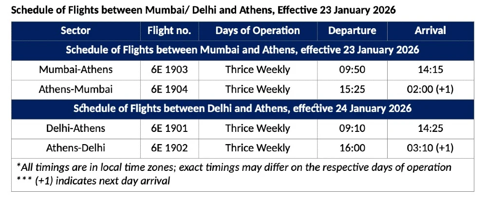 IndiGo will connect Athens and Delhi using the same aircraft starting tomorrow, 24 January 2026. With these, IndiGo becomes the first Indian carrier to directly connect the two countries as it will fly thrice weekly on each route and plans to increase connectivity to more points in Greece in due course.